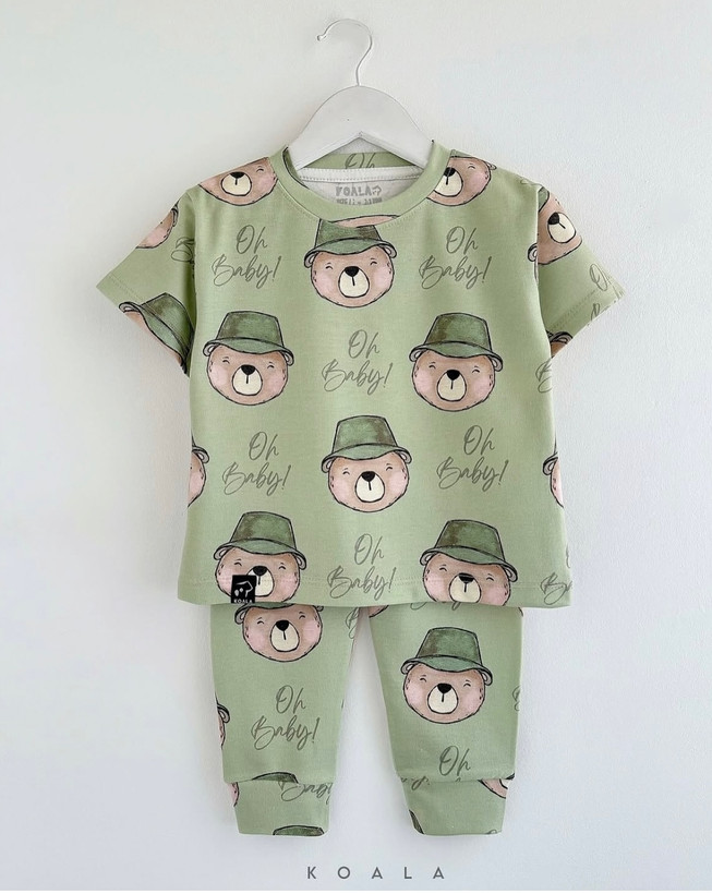 ست راحتی بچگانه آستین کوتاه طرح خرس کلاهدار