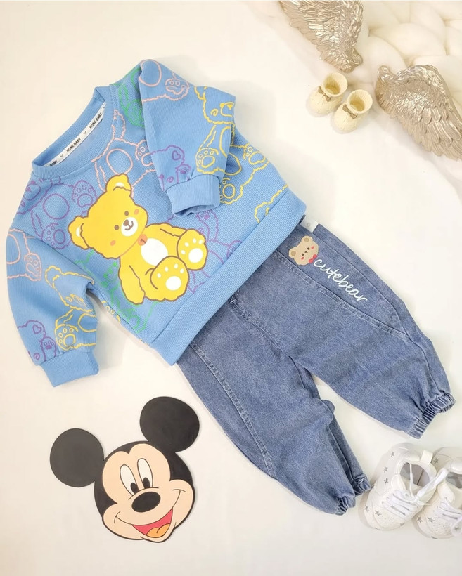 ست بافت وارداتی بچگانه طرح خرس ابی